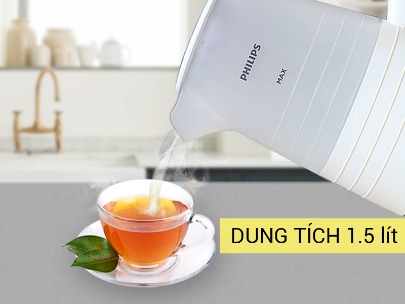 Thiết kế bình đun siêu tốc HD9334 chính hãng Philips có dung tích 1.5 lít, đáp ứng nhu cầu sử dụng pha trà, cà phê, nấu mì cho gia đình từ 2 – 4 người, vô cùng tiện lợi. Sản phẩm thuận tiện cho gia đình có người lớn thường xuyên uống trà sáng.