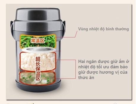 Sản phẩm được sản xuất bằng công nghệ cách nhiệt chân không hiện đại, giúp giữ nhiệt hoàn hảo. Thiết kế với một bình chứa lớn bằng thép không gỉ, có nắp đậy chắc chắn, kín, cùng với khớp khóa chặt, thì thức ăn bên trong của bạn sẽ được giữ ấm cực tốt. 4 ngăn chứa bên trong đều có nắp đậy chặt riêng biệt, ngoài công dụng giữ cho thức ăn không đổ ra ngoài, còn giúp giữ ấm thức ăn tối đa. Bạn sẽ thưởng thức bữa cơm nóng ấm bất cứ khi nào.