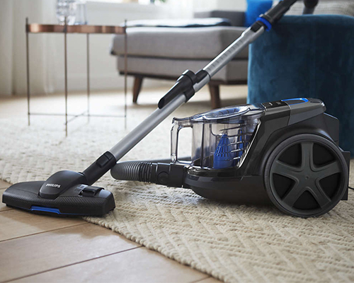 Máy hút bụi Philips kiểu dáng của máy hút bụi truyền thống nhưng nhỏ gọn hơn. Ống thu gọn 2 phần bằng kim loại, có thể hoạt động trong bán kính 9m. Đồng thời, được trang bị 2 bánh xe cao su lớn để thuận tiện cho việc di chuyển khắp nơi trong căn nhà.