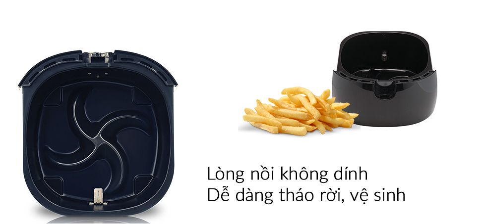 Rổ QuickClean của Airfryer phủ chống dính để dễ dàng vệ sinh. Rán trong không khí cũng có nghĩa là ngôi nhà của bạn sẽ không còn mùi của cách chiên rán truyền thống. Lòng nồi hoa khế, phủ chống dính có thể tháo rời, toàn bộ phụ kiện có thể rửa trong máy rửa bát.