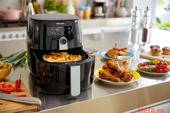 Với nồi chiên chân không Philips HD9643/11, bạn có thể dễ dàng làm các món chiên, nướng, quay thậm chí nướng bánh.