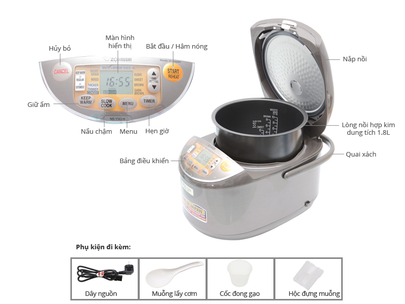 - Menu nấu phong phú: Gạo trắng (hạt dài / hạt ngắn, Cơm trộn, cháo đặc, cháo loãng, Cơm Sushi, xôi, Gạo lức(Gaba), gạo lức nảy mầm.
